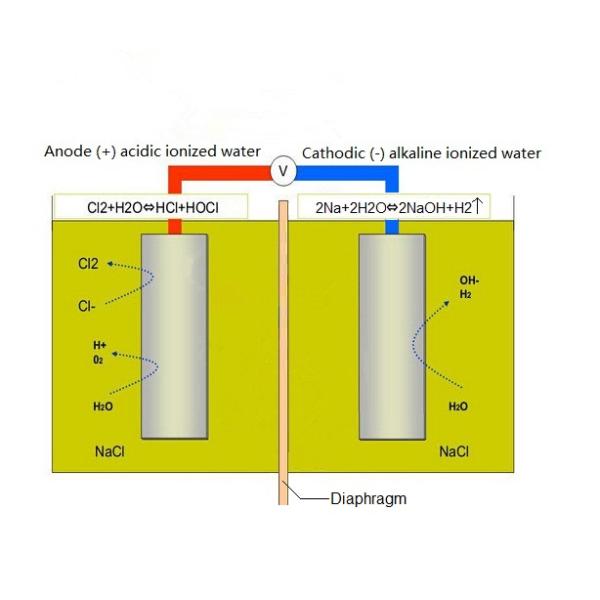 Unlike other electrolytic cells, here a diaphragm separates the Anolyte and Catholyte that are generated respectively at the anode and cathode chambers of the cell. This prevents the two streams from mixing and inter-reacting to form a simple sodium hypochlorite solution as is the case with other electrolytic cells commercially available now.